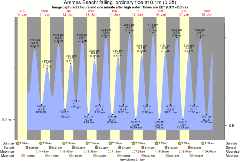 Image captured 2 hours and one minute after high water (falling ordinary tide). Tide height was 0.1m (0.3 ft). Range 0.20m (0.7 ft). Toggle tide graph