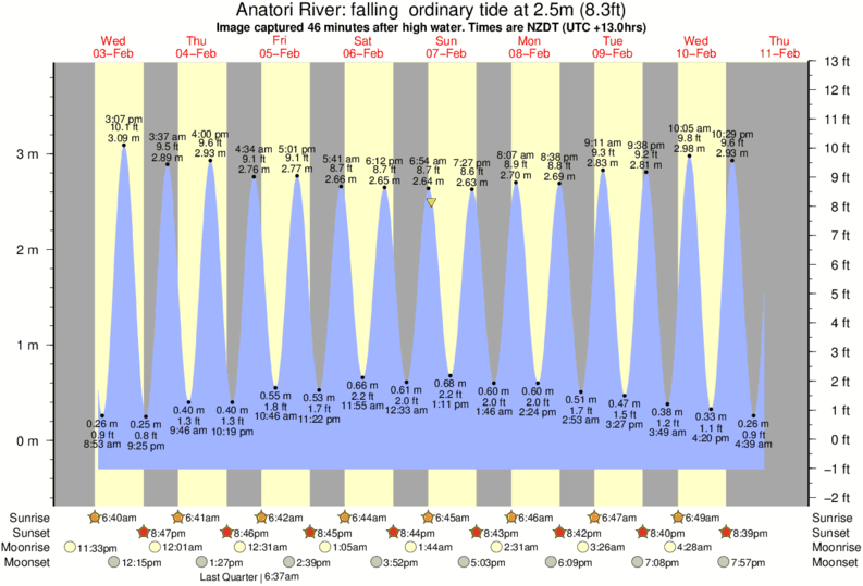 Image captured 46 minutes after high water (falling ordinary tide). Tide height was 2.5m (8.3 ft). Range 3.87m (12.7 ft). Toggle tide graph