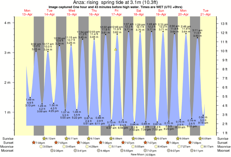 Image captured One hour and 43 minutes before high water (rising spring tide). Tide height was 3.1m (10.3 ft). Range 3.33m (10.9 ft). Toggle tide graph