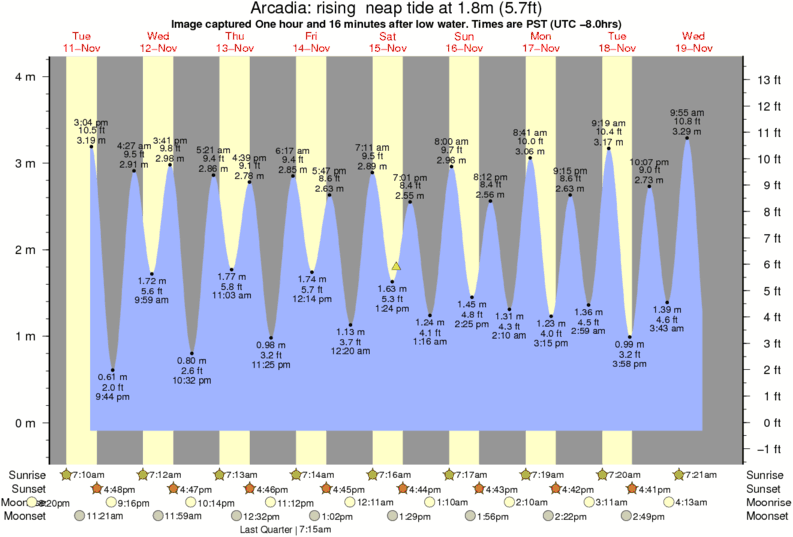 Image captured One hour and 16 minutes after low water (rising neap tide). Tide height was 1.8m (5.7 ft). Range 3.93m (12.9 ft). Toggle tide graph