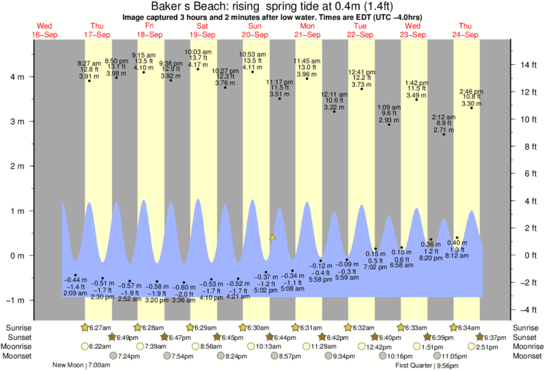 Image captured 3 hours and 2 minutes after low water (rising spring tide). Tide height was 0.4m (1.4 ft). Range 5.24m (17.2 ft). Toggle tide graph