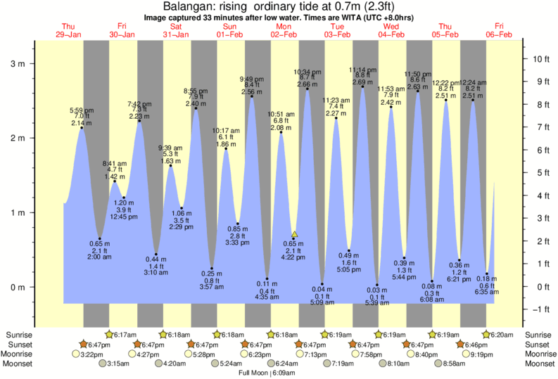 Forecast wind and swell just offshore from Balangan around the time the photo was taken