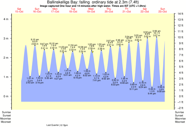 Image captured One hour and 14 minutes after high water (falling ordinary tide). Tide height was 2.3m (7.4 ft). Range 4.16m (13.6 ft). Toggle tide graph