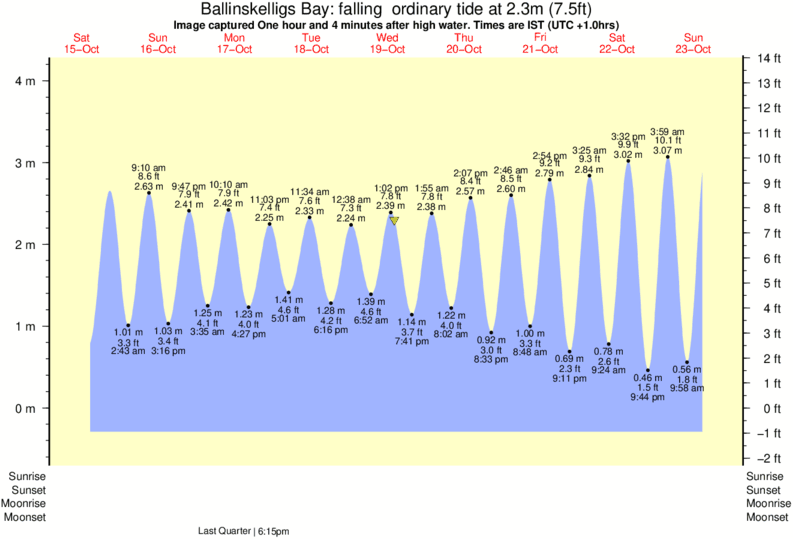 Image captured One hour and 4 minutes after high water (falling ordinary tide). Tide height was 2.3m (7.5 ft). Range 4.16m (13.6 ft). Toggle tide graph