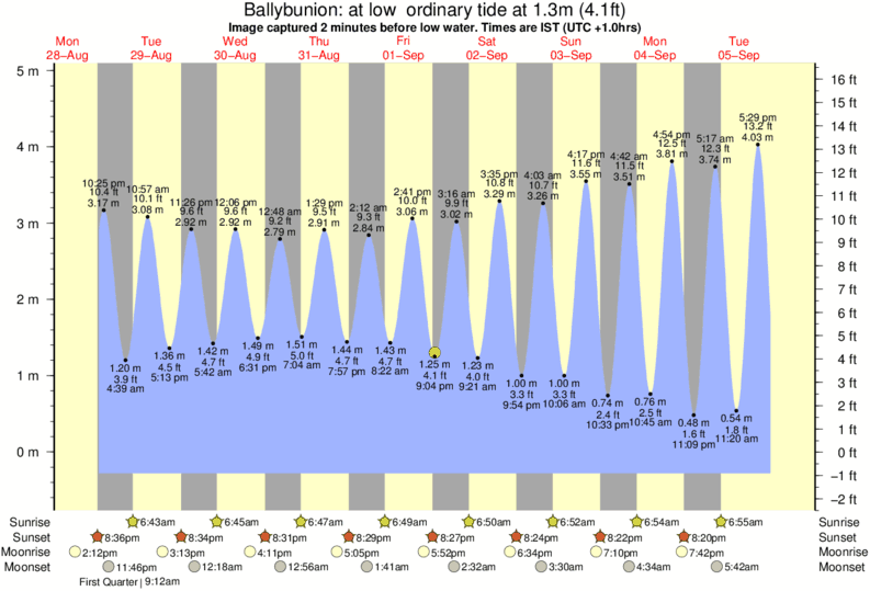 Image captured 2 minutes before low water (at low ordinary tide). Tide height was 1.3m (4.1 ft). Range 4.89m (16.0 ft). Toggle tide graph
