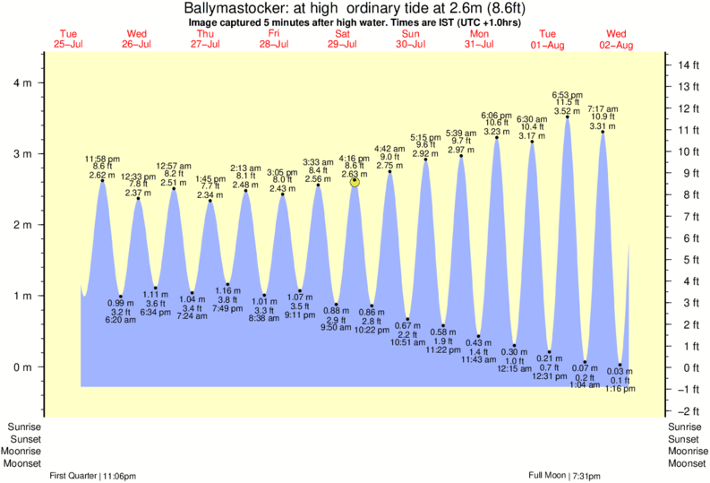 Image captured 5 minutes after high water (at high ordinary tide). Tide height was 2.6m (8.6 ft). Range 4.29m (14.1 ft). Toggle tide graph