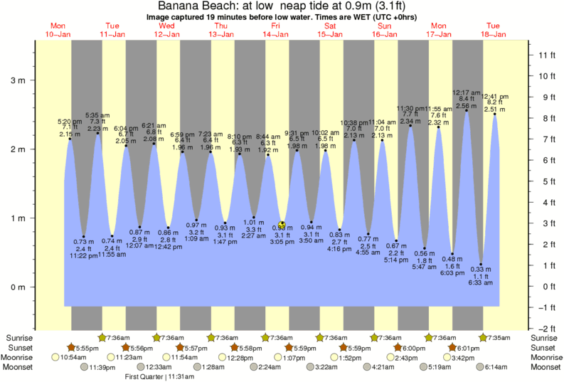 Forecast wind and swell just offshore from Banana Beach around the time the photo was taken