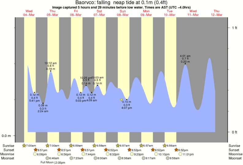Image captured 5 hours and 29 minutes before low water (falling neap tide). Tide height was 0.1m (0.4 ft). Range 0.29m (1.0 ft). Toggle tide graph