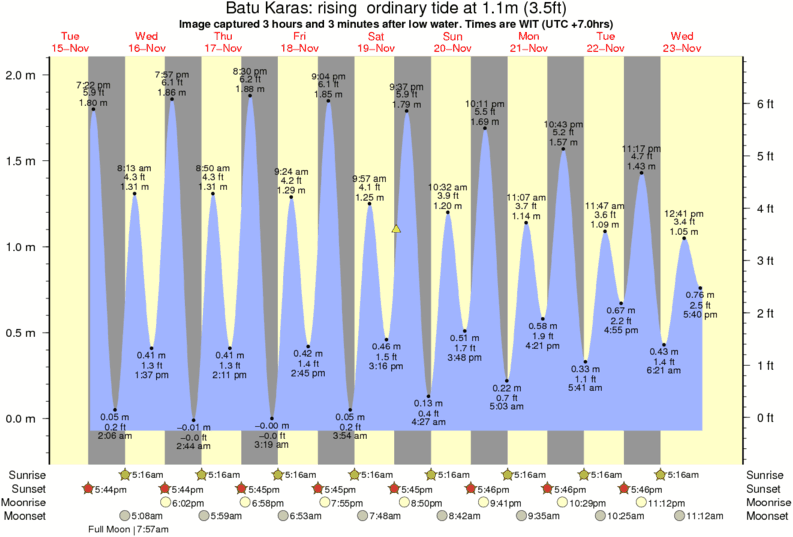 Image captured 3 hours and 3 minutes after low water (rising ordinary tide). Tide height was 1.1m (3.5 ft). Range 1.98m (6.5 ft). Toggle tide graph
