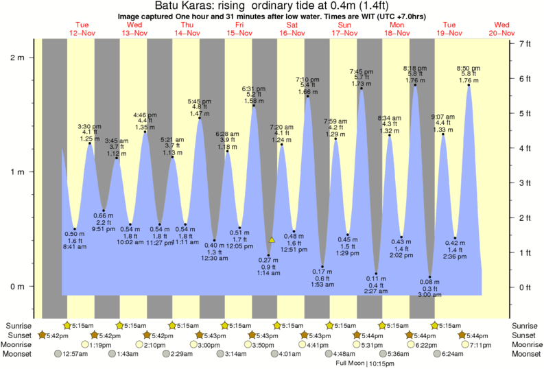 Forecast wind and swell just offshore from Batu Karas around the time the photo was taken