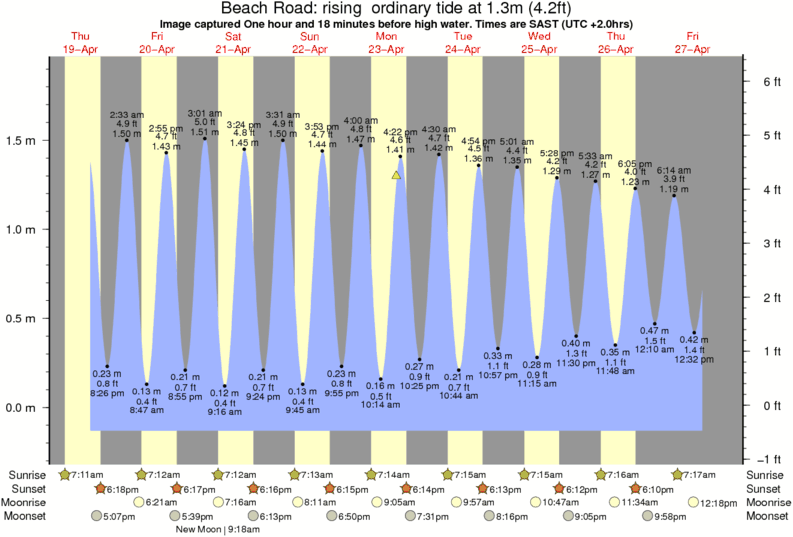 Image captured One hour and 18 minutes before high water (rising ordinary tide). Tide height was 1.3m (4.2 ft). Range 1.91m (6.3 ft). Toggle tide graph