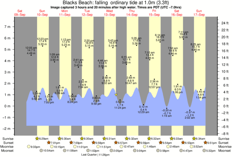 Image captured 3 hours and 20 minutes after high water (falling ordinary tide). Tide height was 1.0m (3.3 ft). Range 8.75m (28.7 ft). Toggle tide graph
