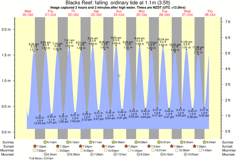 Image captured 3 hours and 2 minutes after high water (falling ordinary tide). Tide height was 1.1m (3.5 ft). Range 1.98m (6.5 ft). Toggle tide graph