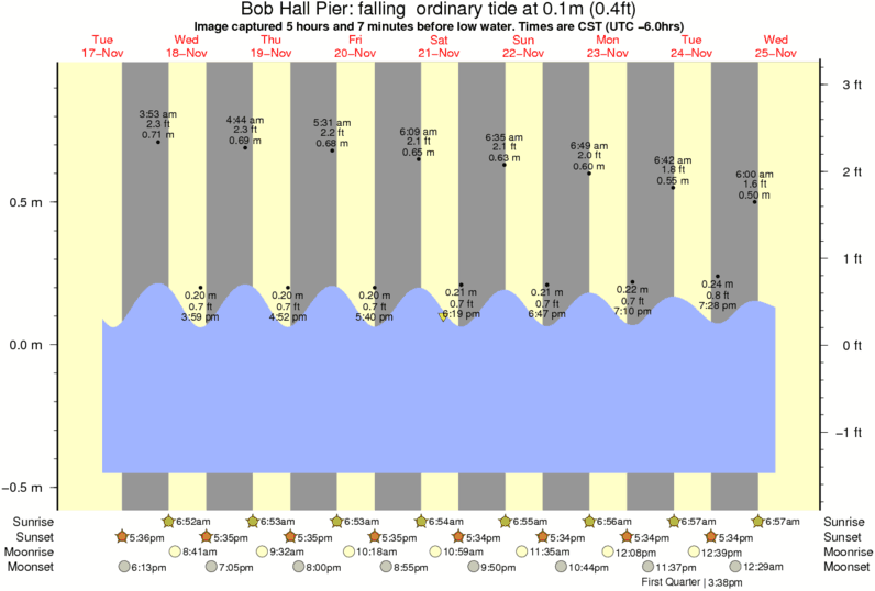 Forecast wind and swell just offshore from Bob Hall Pier around the time the photo was taken