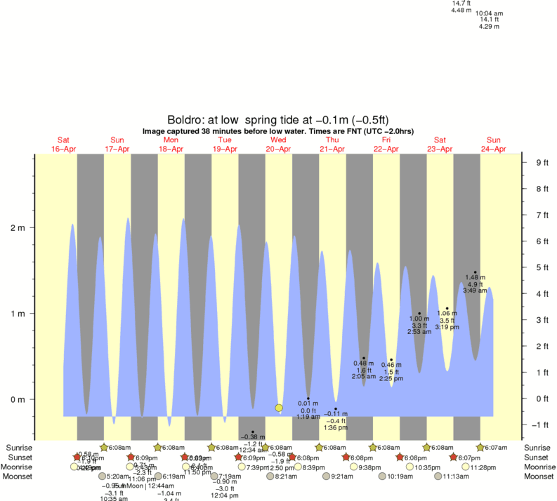 Image captured 38 minutes before low water (at low spring tide). Tide height was -0.1m (-0.5 ft). Range 2.78m (9.1 ft). Toggle tide graph