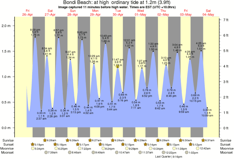 Forecast wind and swell just offshore from Bondi Beach around the time the photo was taken