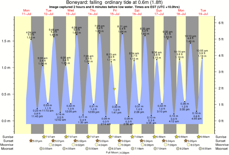 Image captured 2 hours and 6 minutes before low water (falling ordinary tide). Tide height was 0.6m (1.8 ft). Range 1.84m (6.0 ft). Toggle tide graph