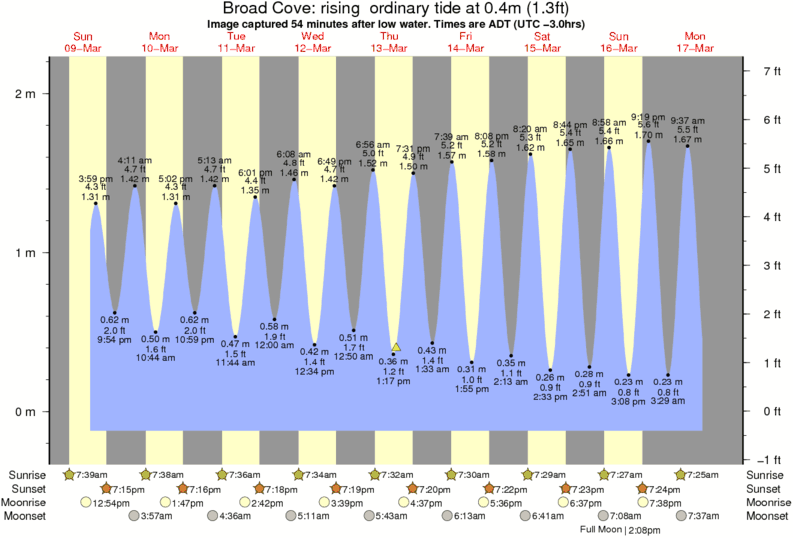 Image captured 54 minutes after low water (rising ordinary tide). Tide height was 0.4m (1.3 ft). Range 2.14m (7.0 ft). Toggle tide graph