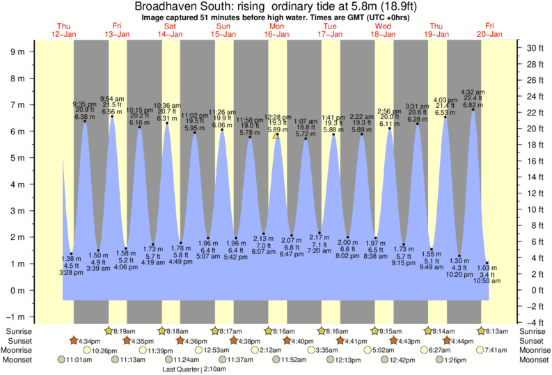 Image captured 51 minutes before high water (rising ordinary tide). Tide height was 5.8m (18.9 ft). Range 8.93m (29.3 ft). Toggle tide graph