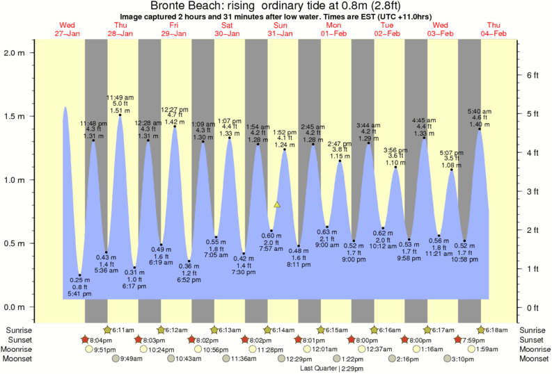 Forecast wind and swell just offshore from Bronte Beach around the time the photo was taken