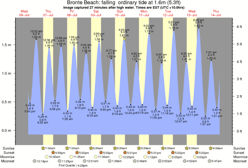 Forecast wind and swell just offshore from Bronte Beach around the time the photo was taken