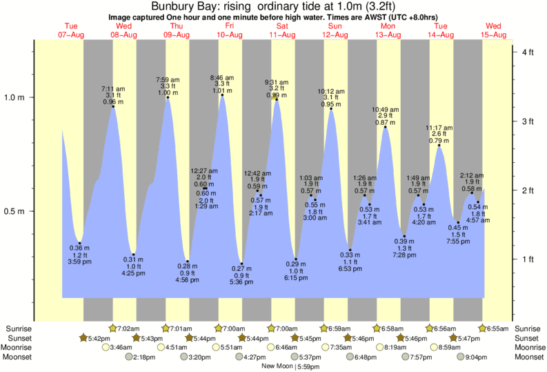 Forecast wind and swell just offshore from Bunbury Bay around the time the photo was taken