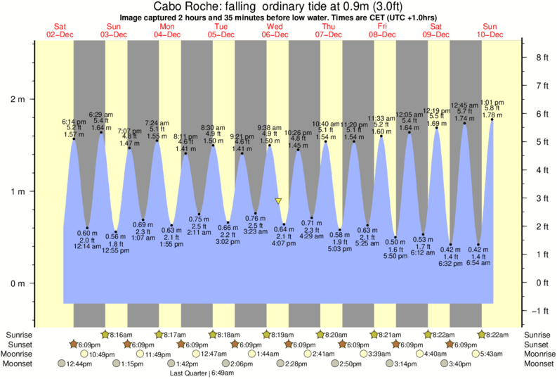 Forecast wind and swell just offshore from Cabo Roche around the time the photo was taken