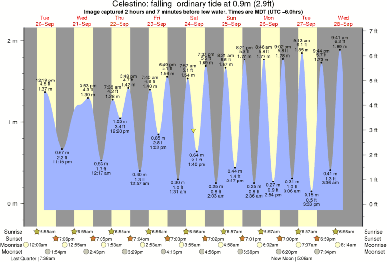 Image captured 2 hours and 7 minutes before low water (falling ordinary tide). Tide height was 0.9m (2.9 ft). Range 2.04m (6.7 ft). Toggle tide graph