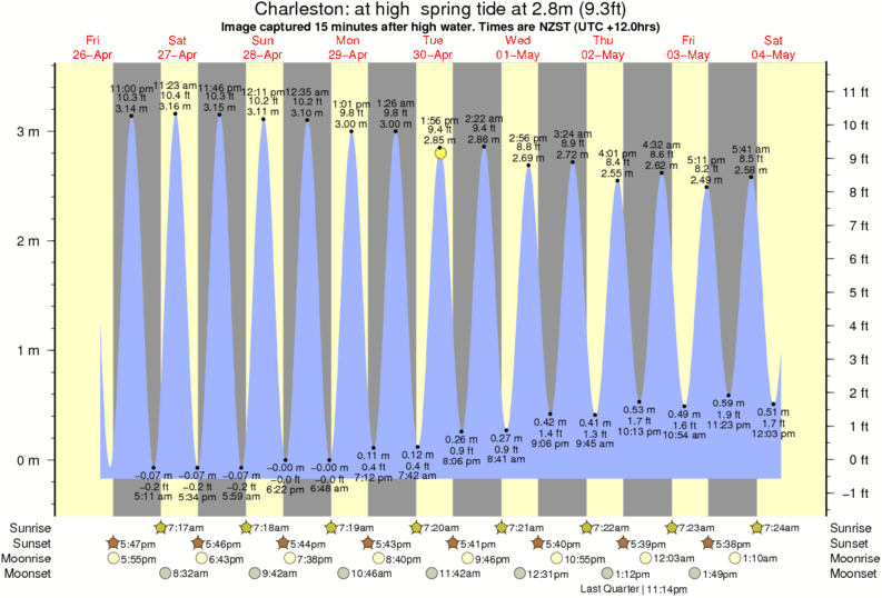 Image captured 15 minutes after high water (at high spring tide). Tide height was 2.8m (9.3 ft). Range 3.45m (11.3 ft). Toggle tide graph