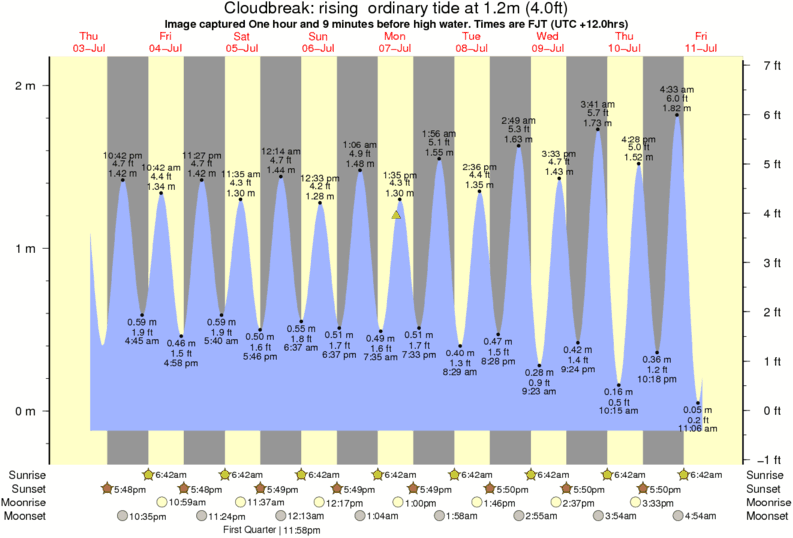 Forecast wind and swell just offshore from Cloudbreak around the time the photo was taken