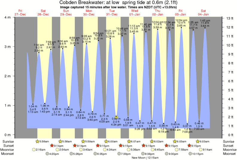 Image captured 15 minutes after low water (at low spring tide). Tide height was 0.6m (2.1 ft). Range 3.45m (11.3 ft). Toggle tide graph