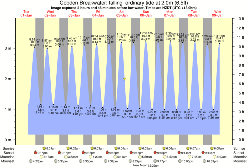Forecast wind and swell just offshore from Cobden Breakwater around the time the photo was taken