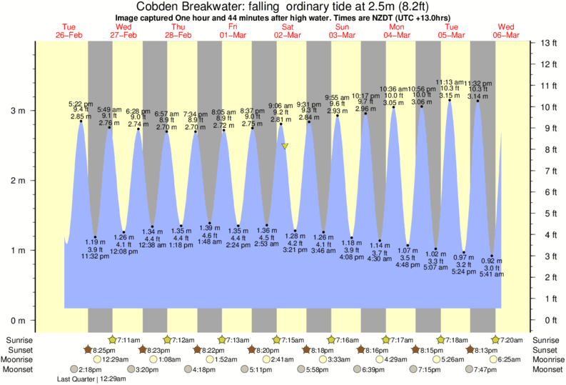 Image captured One hour and 44 minutes after high water (falling ordinary tide). Tide height was 2.5m (8.2 ft). Range 3.48m (11.4 ft). Toggle tide graph