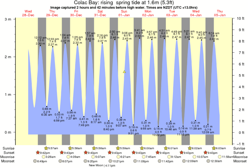 Image captured 2 hours and 42 minutes before high water (rising spring tide). Tide height was 1.6m (5.3 ft). Range 2.82m (9.3 ft). Toggle tide graph