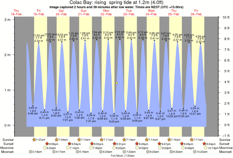 Image captured 2 hours and 39 minutes after low water (rising spring tide). Tide height was 1.2m (4.0 ft). Range 2.84m (9.3 ft). Toggle tide graph