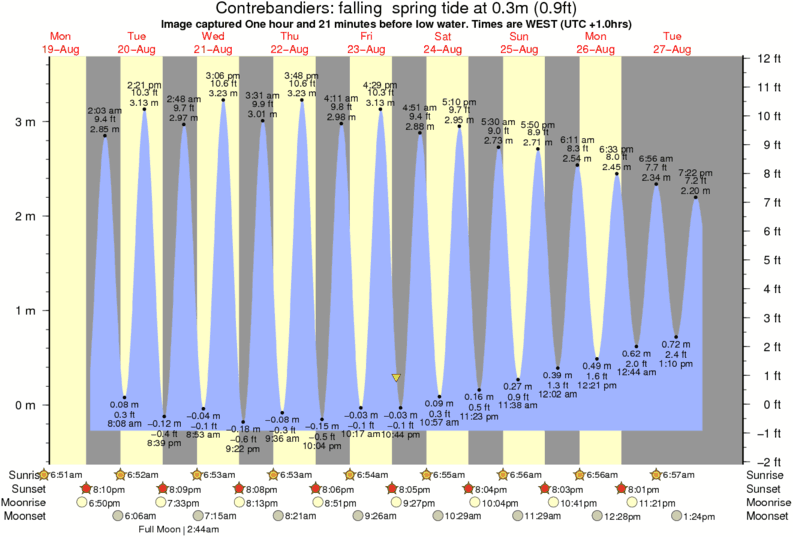 Image captured One hour and 21 minutes before low water (falling spring tide). Tide height was 0.3m (0.9 ft). Range 3.60m (11.8 ft). Toggle tide graph