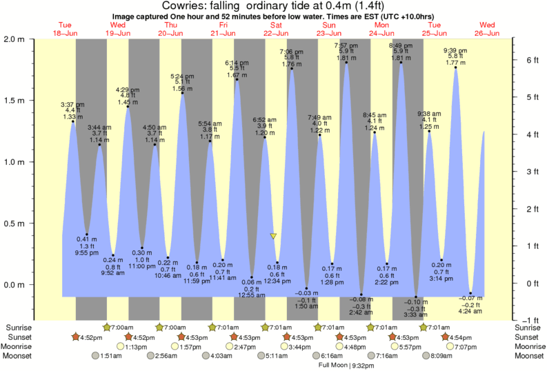 Image captured One hour and 52 minutes before low water (falling ordinary tide). Tide height was 0.4m (1.4 ft). Range 1.91m (6.3 ft). Toggle tide graph