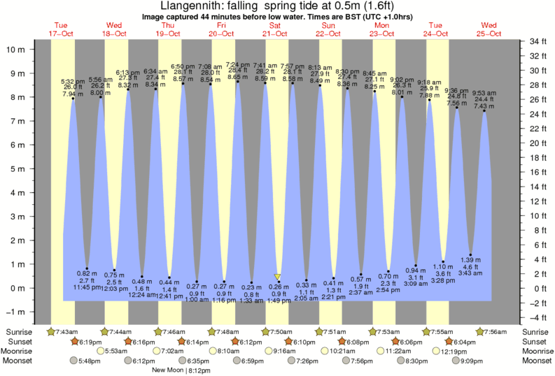 Image captured 44 minutes before low water (falling spring tide). Tide height was 0.5m (1.6 ft). Range 9.96m (32.7 ft). Toggle tide graph