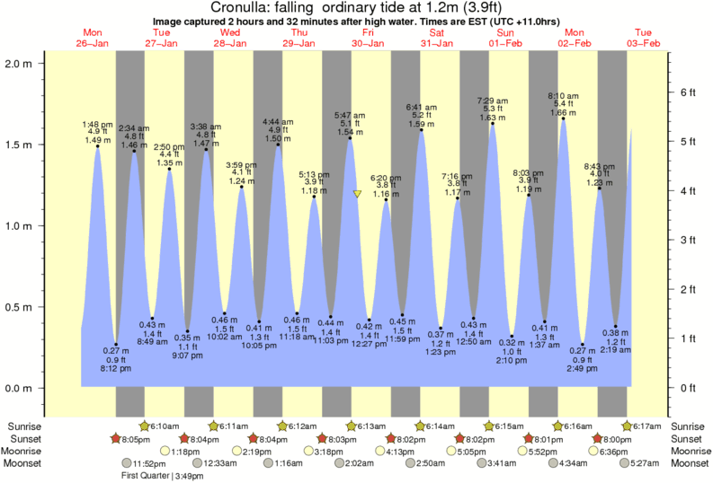 Image captured 2 hours and 32 minutes after high water (falling ordinary tide). Tide height was 1.2m (3.9 ft). Range 1.88m (6.2 ft). Toggle tide graph
