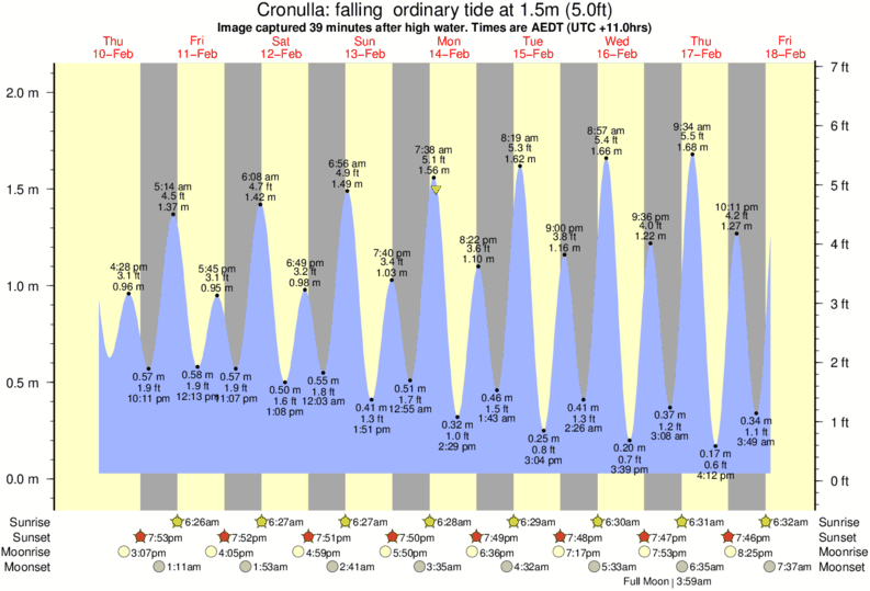 Image captured 39 minutes after high water (falling ordinary tide). Tide height was 1.5m (5.0 ft). Range 1.93m (6.3 ft). Toggle tide graph