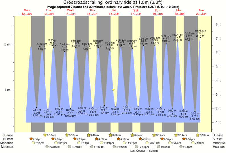 Image captured 2 hours and 39 minutes before low water (falling ordinary tide). Tide height was 1.0m (3.3 ft). Range 2.11m (6.9 ft). Toggle tide graph