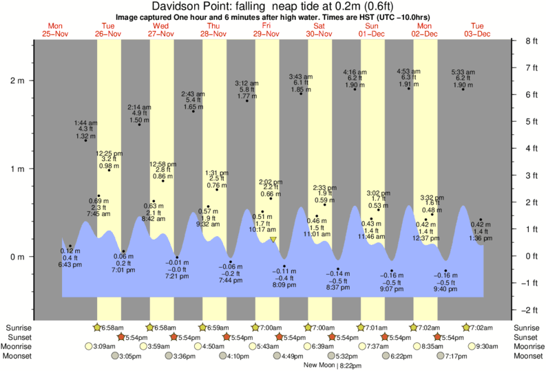 Image captured One hour and 6 minutes after high water (falling neap tide). Tide height was 0.2m (0.6 ft). Range 2.66m (8.7 ft). Toggle tide graph
