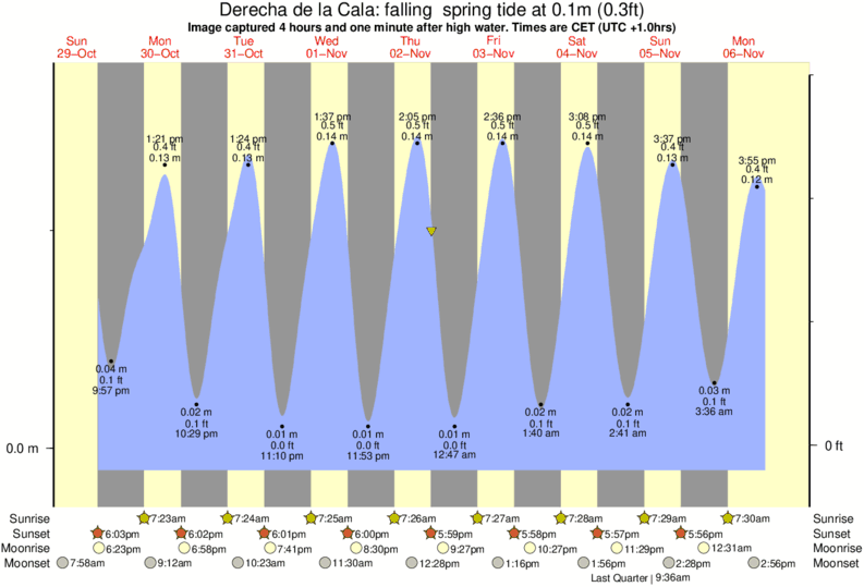 Image captured 4 hours and one minute after high water (falling spring tide). Tide height was 0.1m (0.3 ft). Range 0.17m (0.6 ft). Toggle tide graph