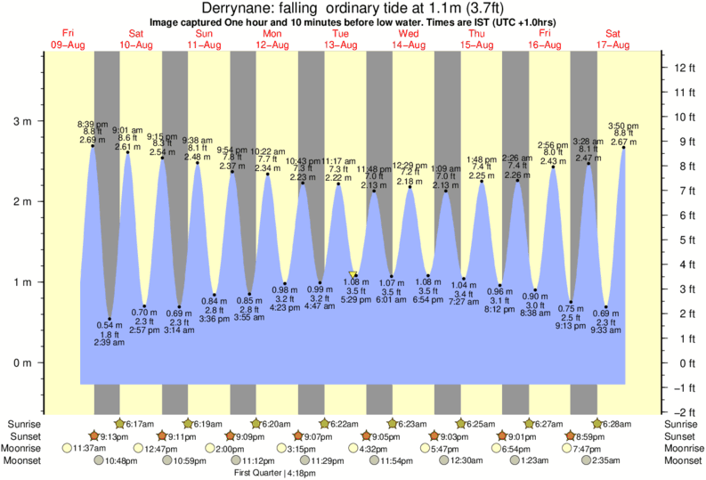Image captured One hour and 10 minutes before low water (falling ordinary tide). Tide height was 1.1m (3.7 ft). Range 3.76m (12.3 ft). Toggle tide graph