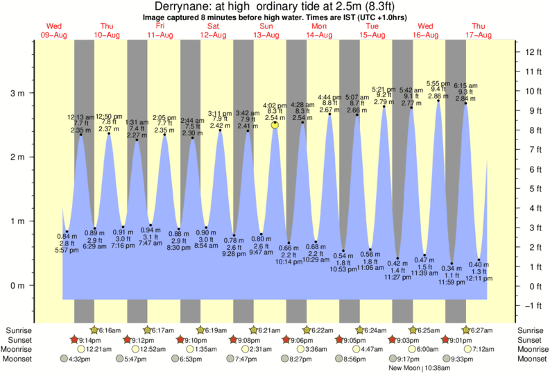 Image captured 8 minutes before high water (at high ordinary tide). Tide height was 2.5m (8.3 ft). Range 3.68m (12.1 ft). Toggle tide graph