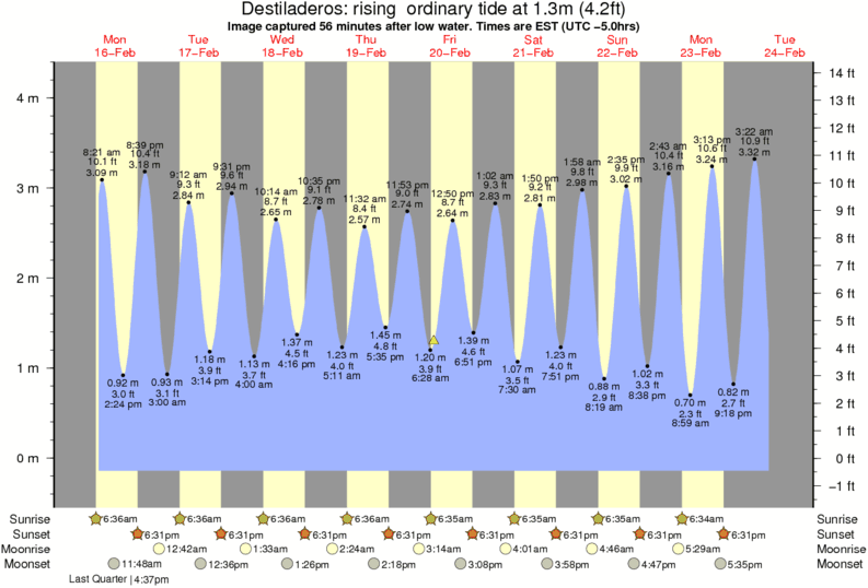 Forecast wind and swell just offshore from Destiladeros around the time the photo was taken