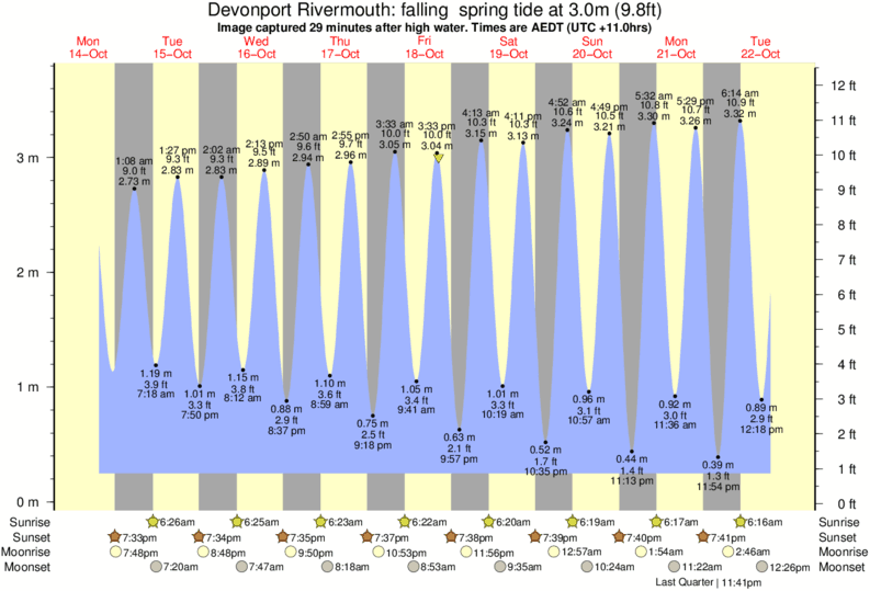 Image captured 29 minutes after high water (falling spring tide). Tide height was 3.0m (9.8 ft). Range 3.25m (10.7 ft). Toggle tide graph