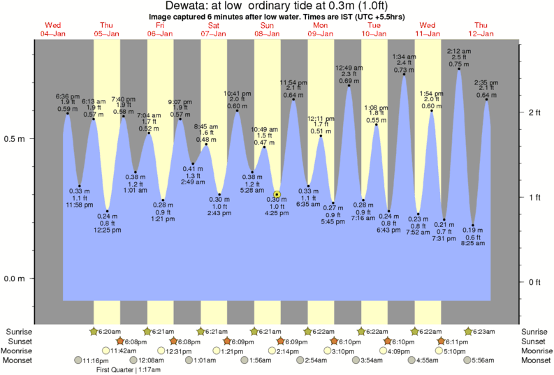Image captured 6 minutes after low water (at low ordinary tide). Tide height was 0.3m (1.0 ft). Range 0.85m (2.8 ft). Toggle tide graph