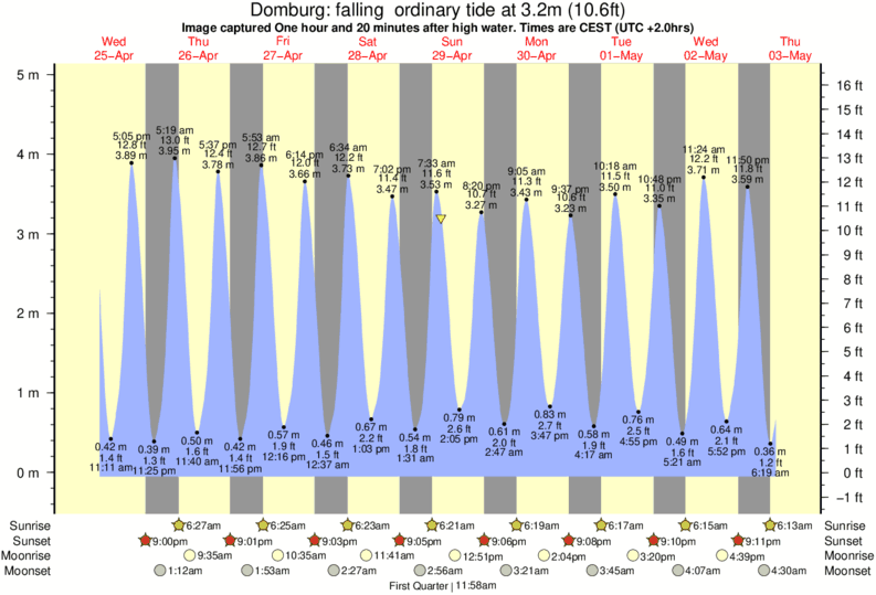 Image captured One hour and 20 minutes after high water (falling ordinary tide). Tide height was 3.2m (10.6 ft). Range 4.72m (15.5 ft). Toggle tide graph
