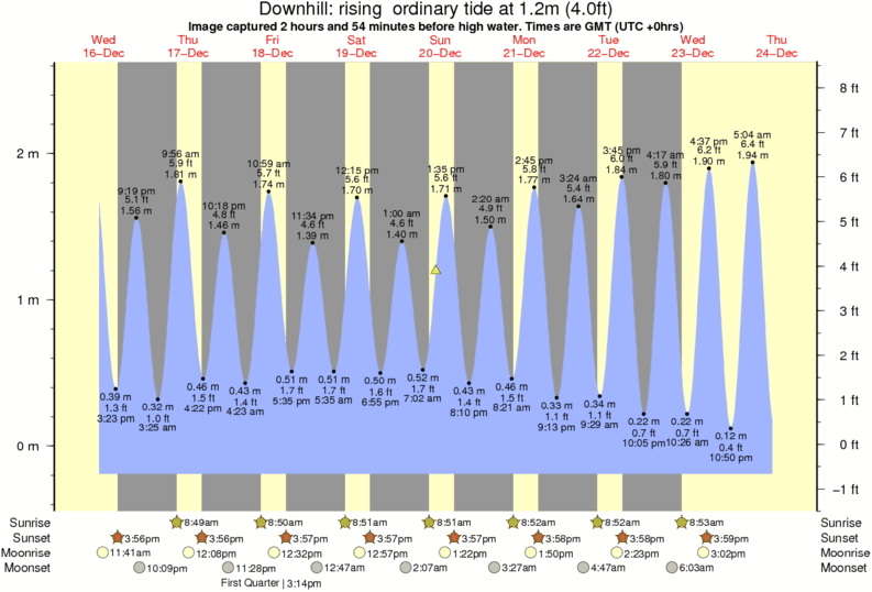 Forecast wind and swell just offshore from Downhill around the time the photo was taken